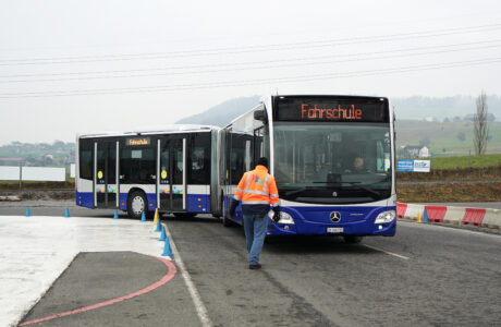 Anders als in anderen Jahren standen nicht das sichere Lenken in Extremsituationen auf der Schleuderpiste im Vordergrund, sondern Technik, Sicherheit und das vertiefte Fahrzeuggefühl. Im Verkehrszentrum Tuggen trainierten die Mitarbeitenden das präzise Manövrieren von 12- und 18-Meter-Bussen durch enge, abgesteckte Parcours – vorwärts wie rückwärts. Geschult wurden insbesondere das korrekte Einschätzen von Fahrzeugdimensionen, der Umgang mit dem toten Winkel sowie das sichere Verhalten in anspruchsvollen Verkehrssituationen.